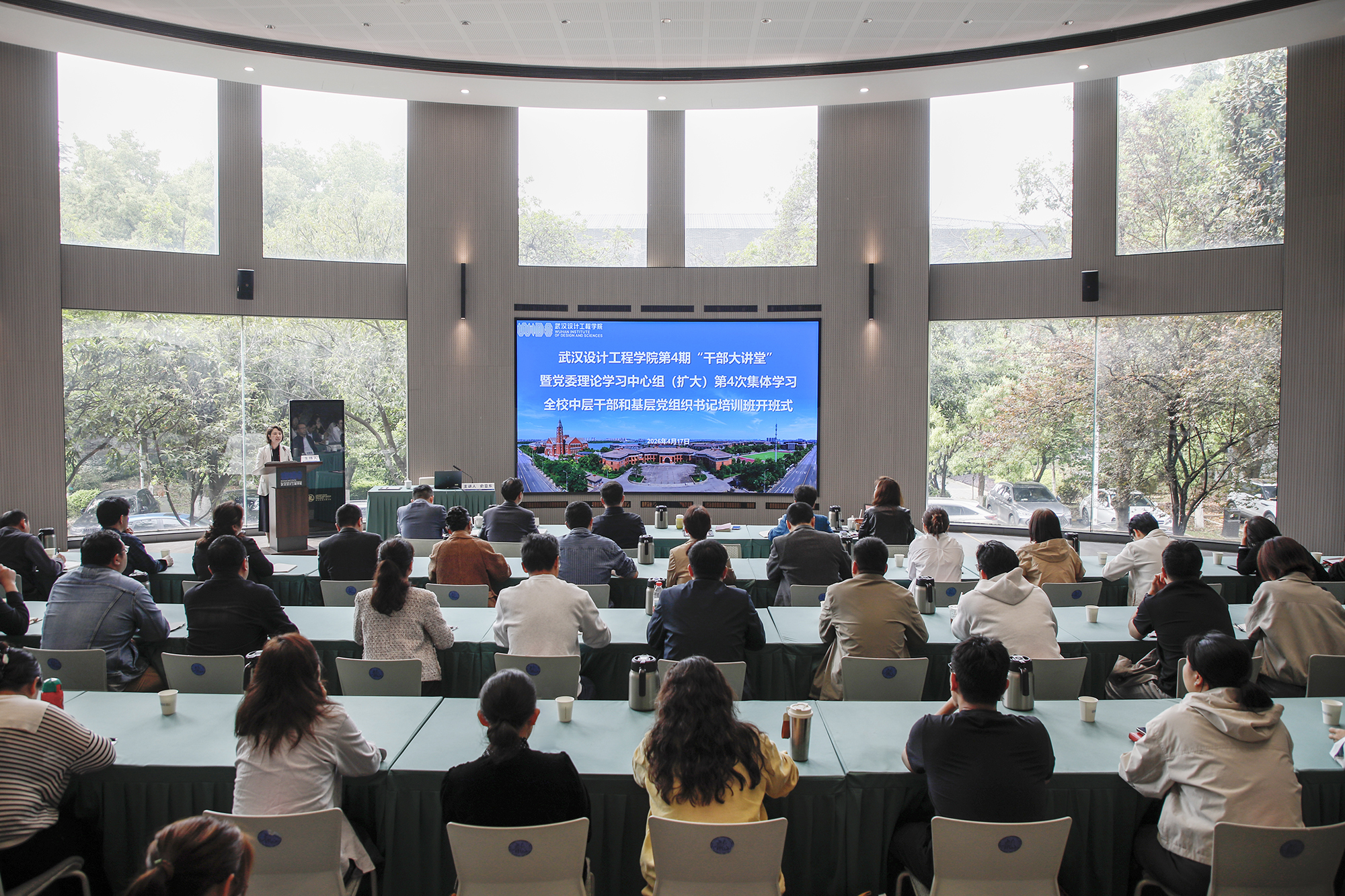 本网讯(记者 陈维)4月17日,我校第4期“干部大讲堂”暨党委理论学习中心组(扩大)2026年第4次集体学习在得一堂一楼报告厅举行,全校中层干部和基层党组织书记培训班同步开班,专题学习有关加强民办高校党的建设的相关精神。会议特邀中国民办学校党建与思政专家委员会理事长俞亚东作主题报告。党委书记王长华主持会议并讲话。党委副书记、副校长张丽娟,党委副书记徐拥华,副校长邱朝坤、吴茜出席会议。